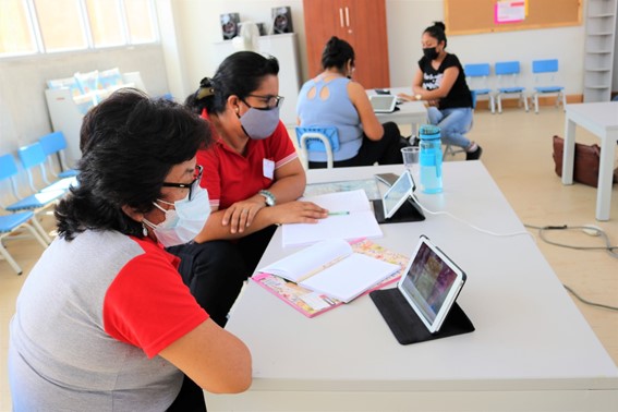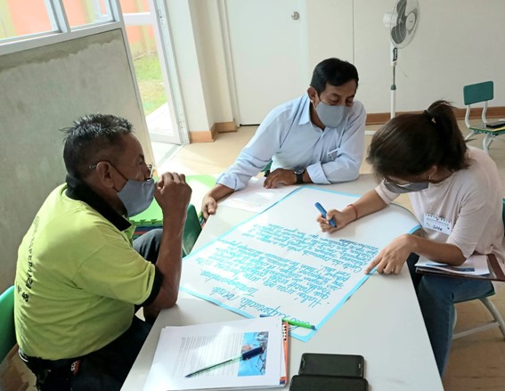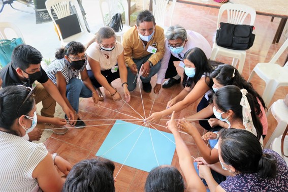 Ici, à gauche,nous avons Carlos Tadeo, coordinateur du groupe des spécialistes et aidant Sœur Marleny, directrice de notre réseau d´éducation rurale.