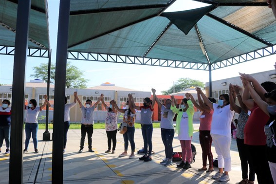 Sur la photo suivante, à gauche, il y a Janet (qui administre tous nos projets financiers avec Sœur Marie Laure), au centre, Astrid (psychologue) et à droite, Yuliana (spécialiste pédagogique pour le niveau gardien). Nous avons un chauffeur et homme á tout faire, aidant aussi la partie logistique, puis Aricela spécialisée pour ce qui est l’informatique et donnant cette formation aux professeurs. Ensuite vient Hermélinda spécialiste pédagogique pour le niveau secondaire et la pastorale ( coordonnant pour ce dernier point avec Sœur Marie Laure), puis Janet Cruz spécialiste pédagogique pour le niveau primaire, ainsi que FAdex, ingénieur agronome, chargé de tout ce qui est apprentissage par projets d´agriculture, apiculture, verger, jardinage, élevage de poulets dans les écoles.