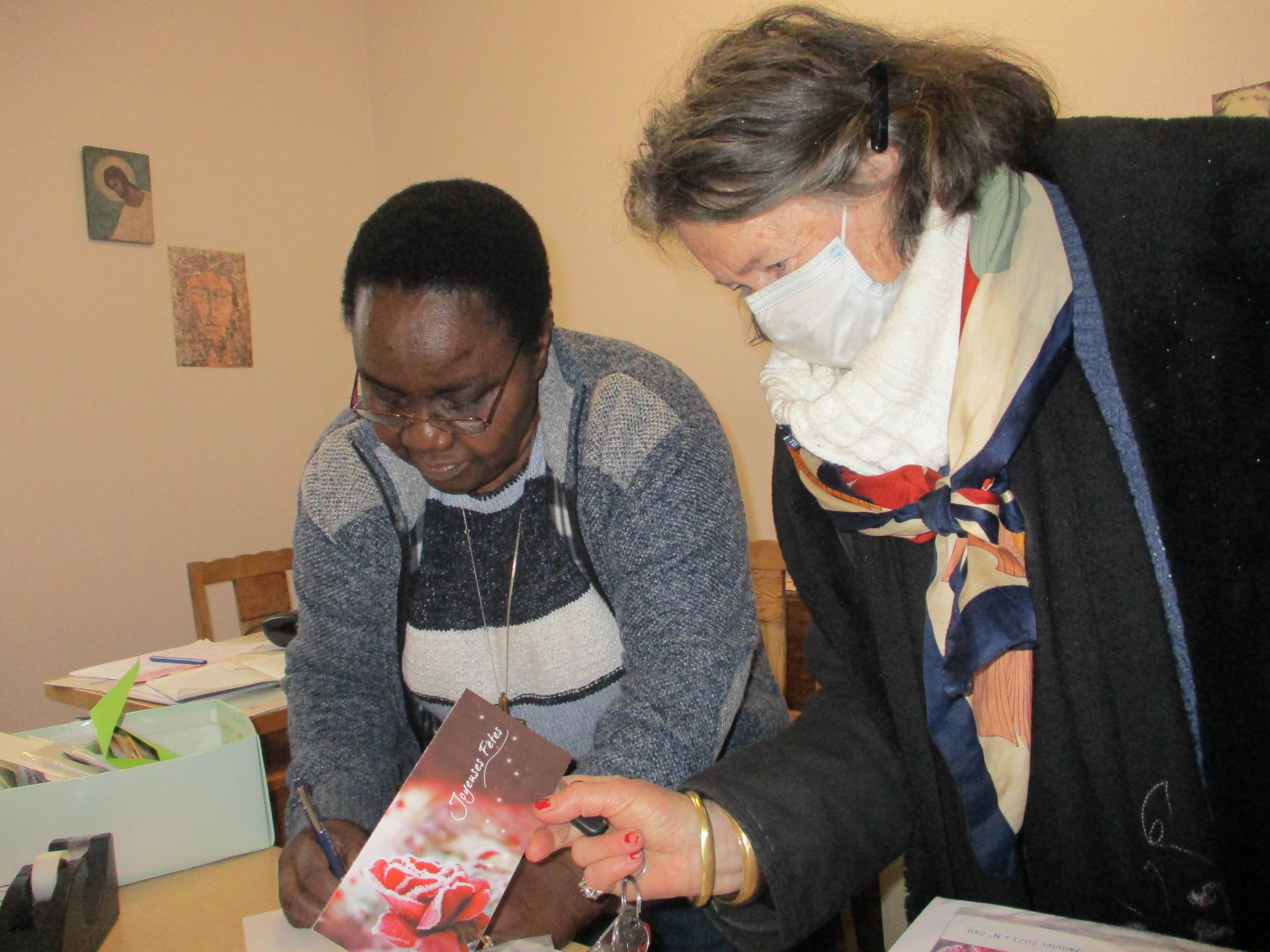 Les différentes cultures, langues, religions continuent à être partagées dans la maison mais le covid rend les rencontres et le partage plus difficiles.