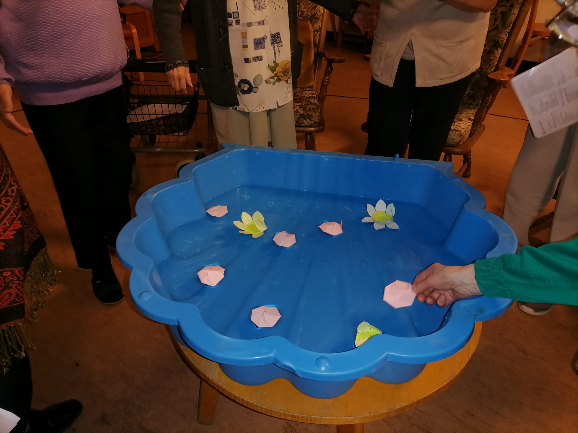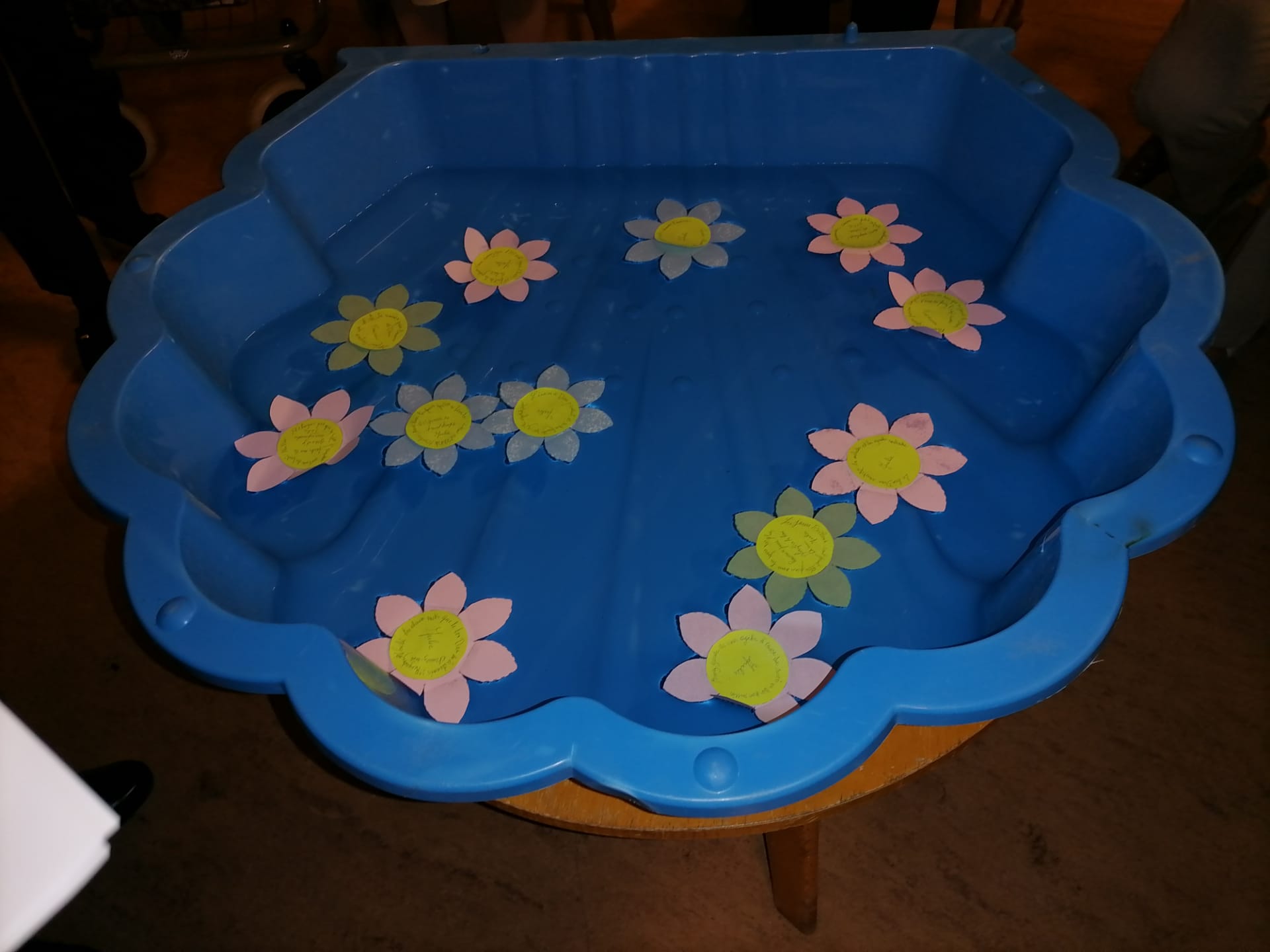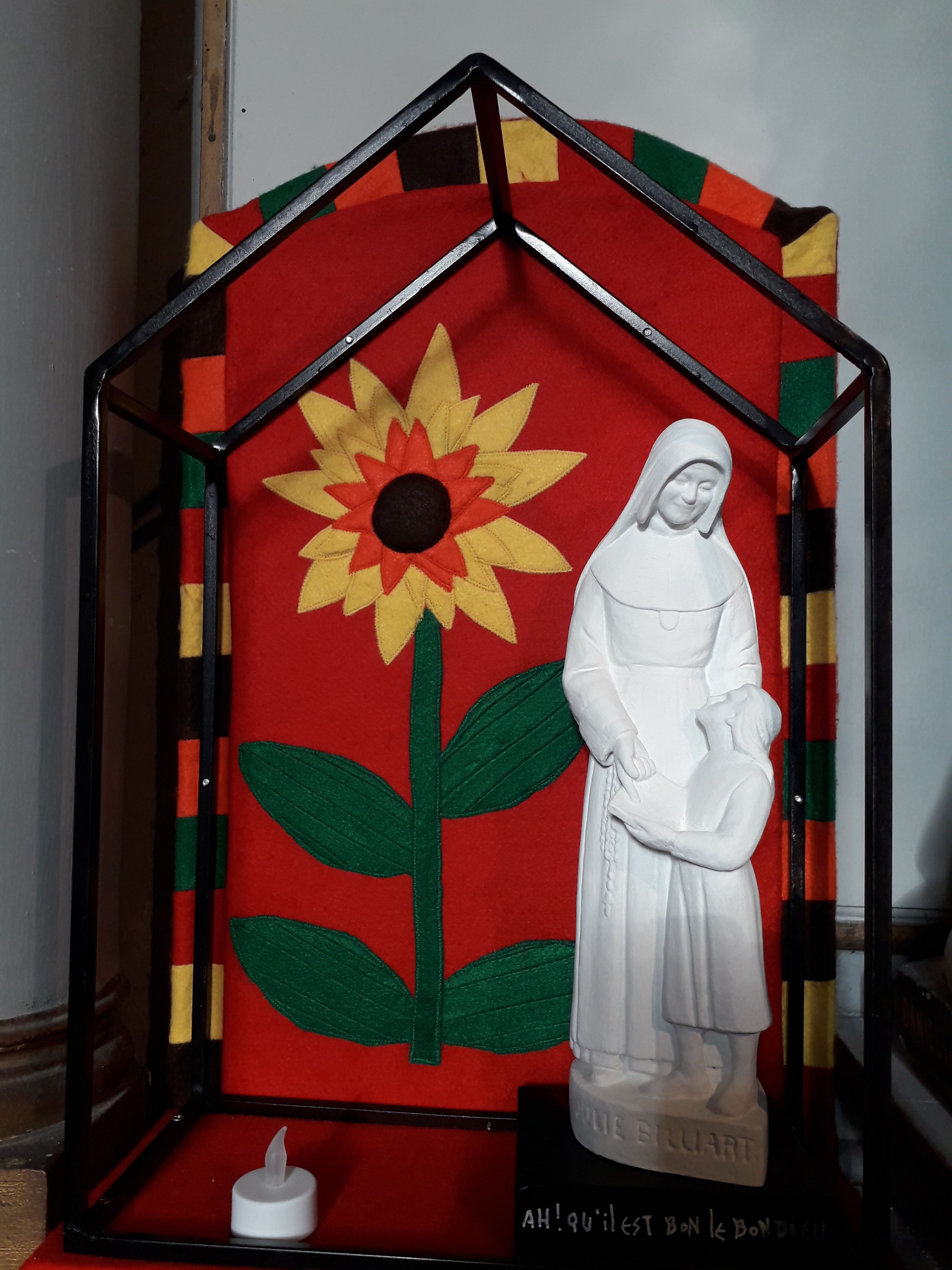 Geste symbolique, nous déposons avec douceur une fleur aux pétales repliées. Une à une, lentement, les pétales se déplient pour montrer une inscription sur leur cœur: une parole de sainte Julie ou de Françoise.