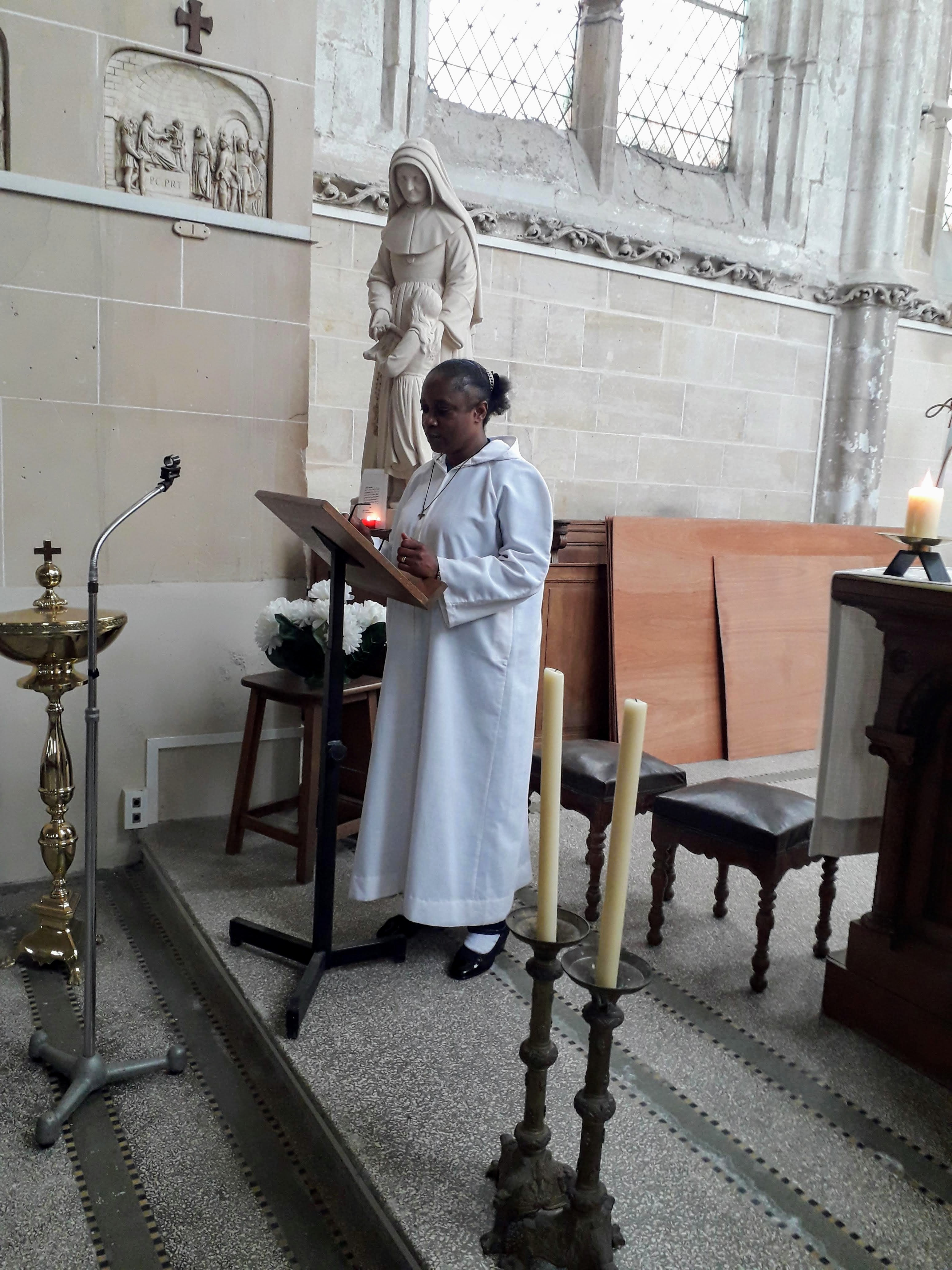 Sœur Christiane introduit la prière.